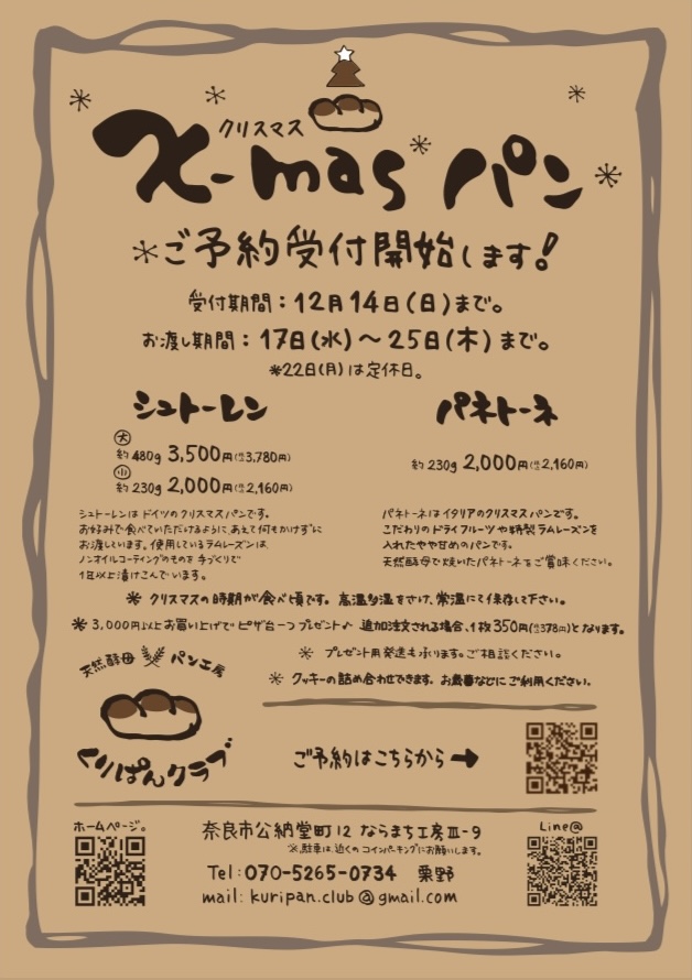 くりぱんの Xmasパンの季節が今年もやってきました!